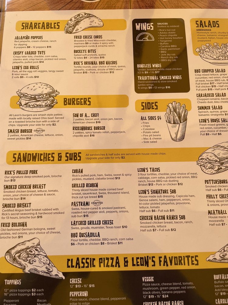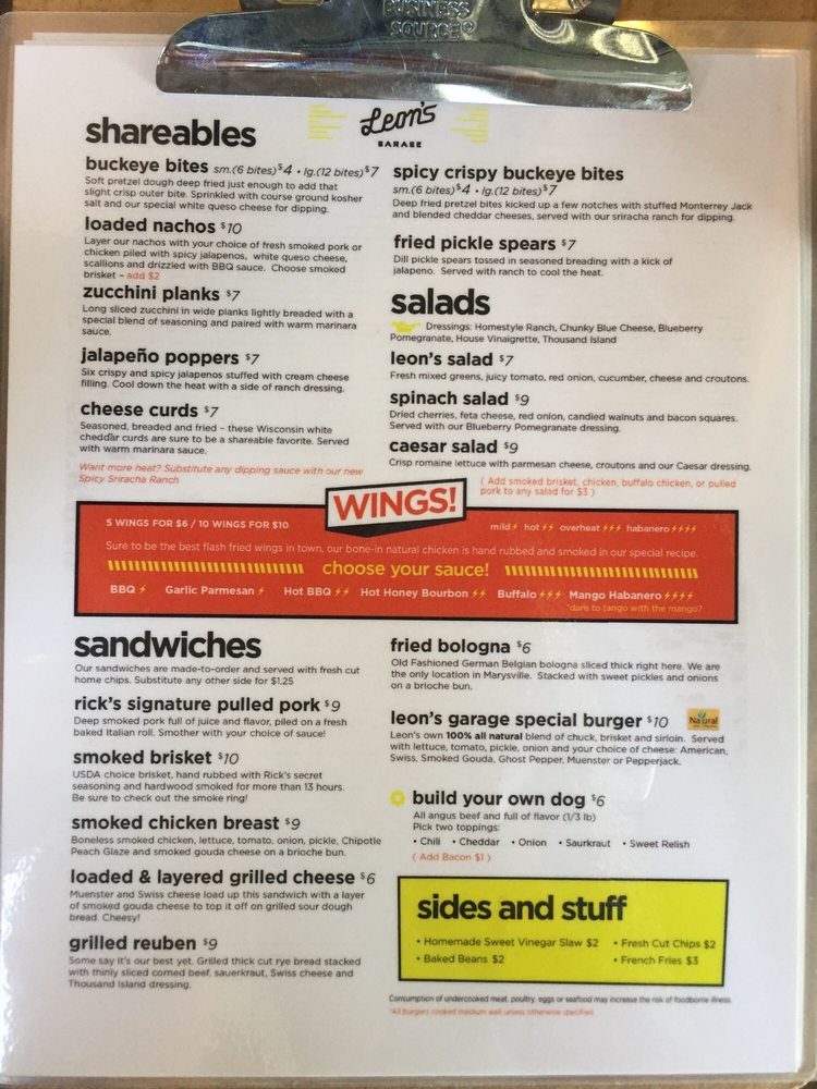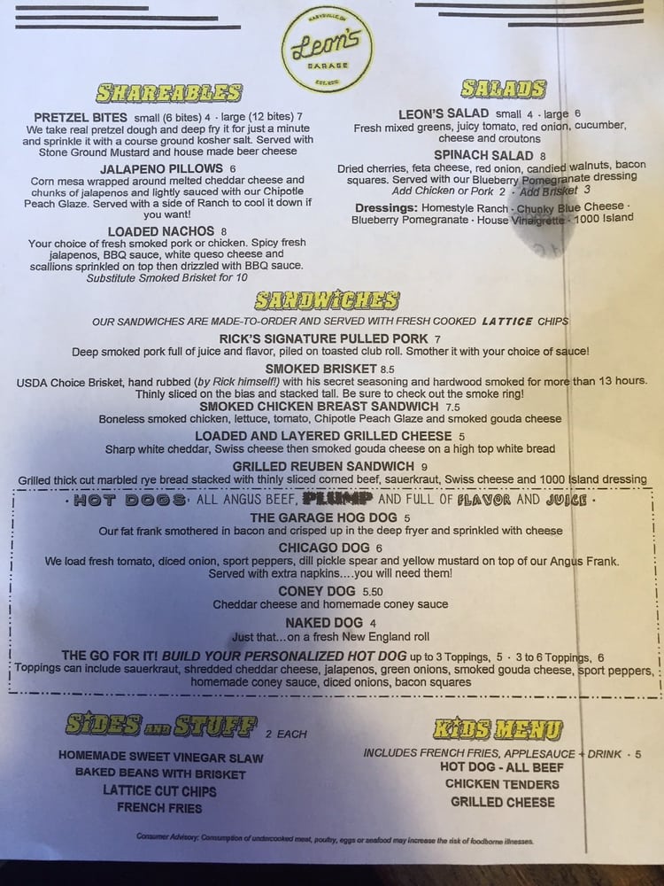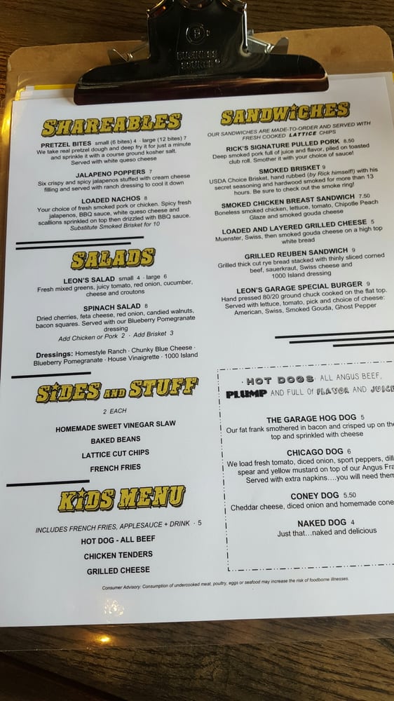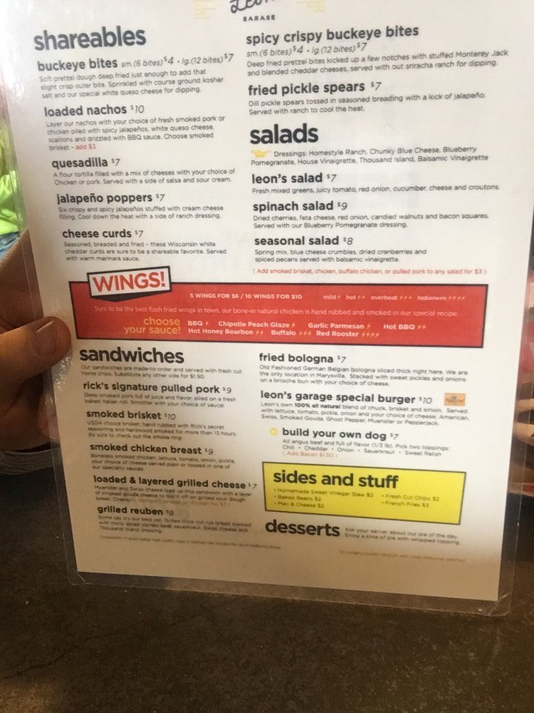 Leon's Garage in Marysville, OH offers a unique dining experience with its varied menu options including salads, sandwiches, and a full bar. The atmosphere is lively with live music, pool tables, and outdoor seating. Customers rave about the delicious food choices, from brisket nachos to messy burgers, and the signature Leon's punch. The service is praised for being attentive, making it a great spot for lunch or dinner with friends and family. The spacious interior and outdoor patio add to the overall dining experience. Whether you're looking for a casual meal or a night out with entertainment, Leon's Garage has something for everyone. With a range of amenities like free Wi-Fi, TV, and smoking allowed, this restaurant caters to a diverse crowd seeking a fun and flavorful dining experience.